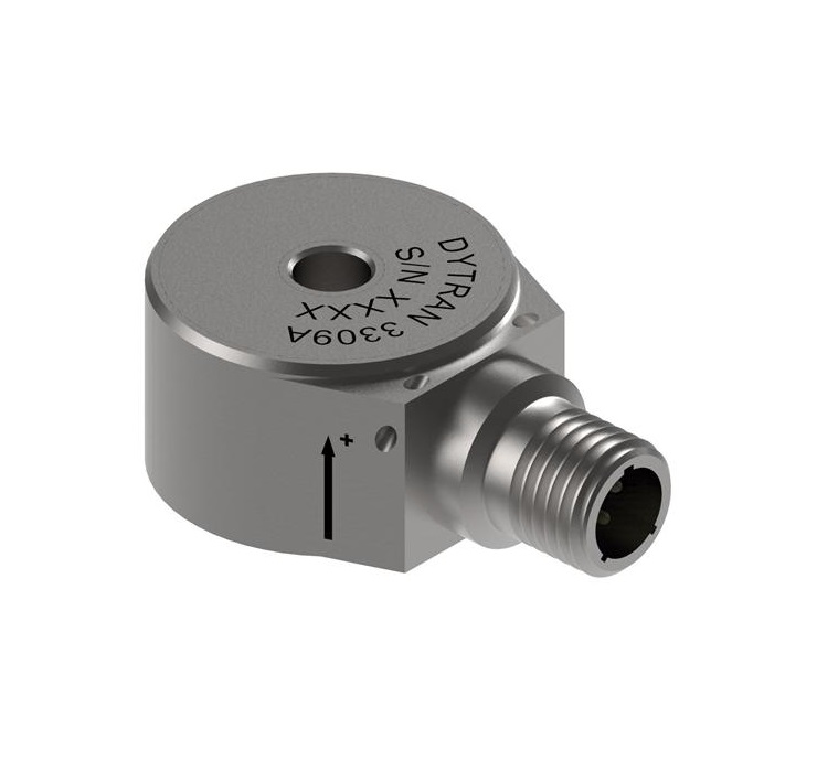 Dytran 3309A加速度傳感器,壓電式電荷輸出,環(huán)形結(jié)構(gòu),5pC/g靈敏度,3針Mighty Mouse?徑向接頭,4.3mm通孔安裝,25.5克重量,-51至250°C使用溫度