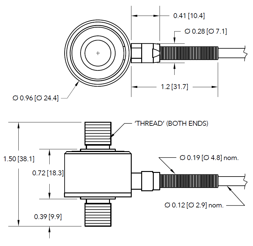 LCM325傳感器是一款微型的軸向拉壓力傳感器,它是為疲勞性測試和拉壓雙向受力應用而設計的。標準的LCM325微型軸向拉壓力傳感器擁有超強的結構,材質為17-4不銹鋼,傳感器兩端外螺紋,3.0米長度的#28 AWG 4芯 PVC編織屏蔽電纜。該產品高度僅為38.1mm,直徑僅為24.4mm。您可以使用匹配的外部輸出電纜或者現成的聚四氟乙烯電纜。如需更大測量范圍,請參考LCM350\LCM375。