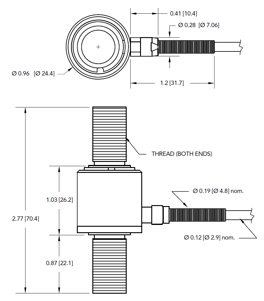 LCM350傳感器是一款軸向拉壓力傳感器,它是為疲勞性測試和拉壓雙向受力應用而設計的。標準的LCM350軸向拉壓力傳感器擁有超強的結構,材質為17-4不銹鋼,傳感器兩端外螺紋,3.0米長度的#28 AWG 4芯 PVC編織屏蔽電纜。該產品高度僅為70.4mm,直徑僅為28.4mm。您可以使用匹配的外部輸出電纜或者現成的聚四氟乙烯電纜。如需更大測量范圍,請參考LCM300\LCM325\LCM375。