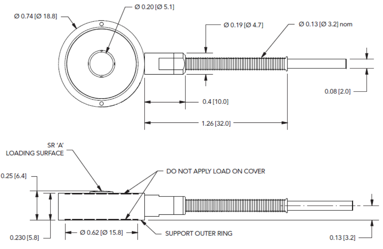LLB300微型按鈕式測力傳感器 FSH03937 4448 N LLB300,4448 N量程,微型按鈕式測力傳感器,材質 - 17-4 PH S.S.,RoHS認證,#29 AWG 4芯編織屏蔽聚四氟乙烯電纜,長度3米